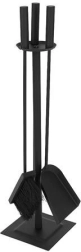 Κομψό σετ εργαλείων τζακιού 4 σε 1 για εύκολη χρήση σε τζάκι, σόμπα, ψησταριά και εστία. Περιλαμβάνει σιδερόβεργα, φαρασάκι, βούρτσα και σταθερή βάση με αντιολισθητικά ποδαράκια. Ανθεκτική κατασκευή από ανοξείδωτο ατσάλι με ματ μαύρη επιφάνεια που κρύβει μικρές γρατσουνιές και ρύπους και χαρίζει καθαρή, μοντέρνα εμφάνιση στον χώρο.
