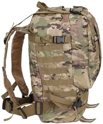 Το ρυθμιζόμενο σύστημα μεταφοράς διαθέτει εργονομικούς ιμάντες ώμου με αγκράφες ταχείας απελευθέρωσης, ιμάντα στήθους και ζώνη μέσης, που βοηθούν στην κατανομή του βάρους και εξασφαλίζουν σταθερότητα. Το σακίδιο είναι συμβατό με σύστημα MOLLE χάρη στους ιμάντες PALS, επιτρέποντας την προσαρμογή επιπλέον εξοπλισμού.