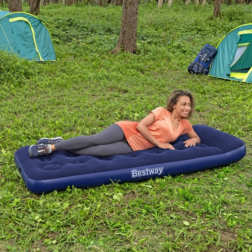 Απολαύστε άνετη ξεκούραση στο σπίτι, στο εξοχικό ή στη σκηνή. Το φουσκωτό στρώμα BESTWAY Air Mattress Jr. Twin συνδυάζει σταθερή εσωτερική κατασκευή coil-beam με ευχάριστη βινύλινη επιφάνεια, που είναι μαλακή στην αφή και καθαρίζεται εύκολα. Χάρη στο ενσωματωμένο μαξιλάρι έχετε άνετη στήριξη κεφαλιού χωρίς την ανάγκη πρόσθετου μαξιλαριού.