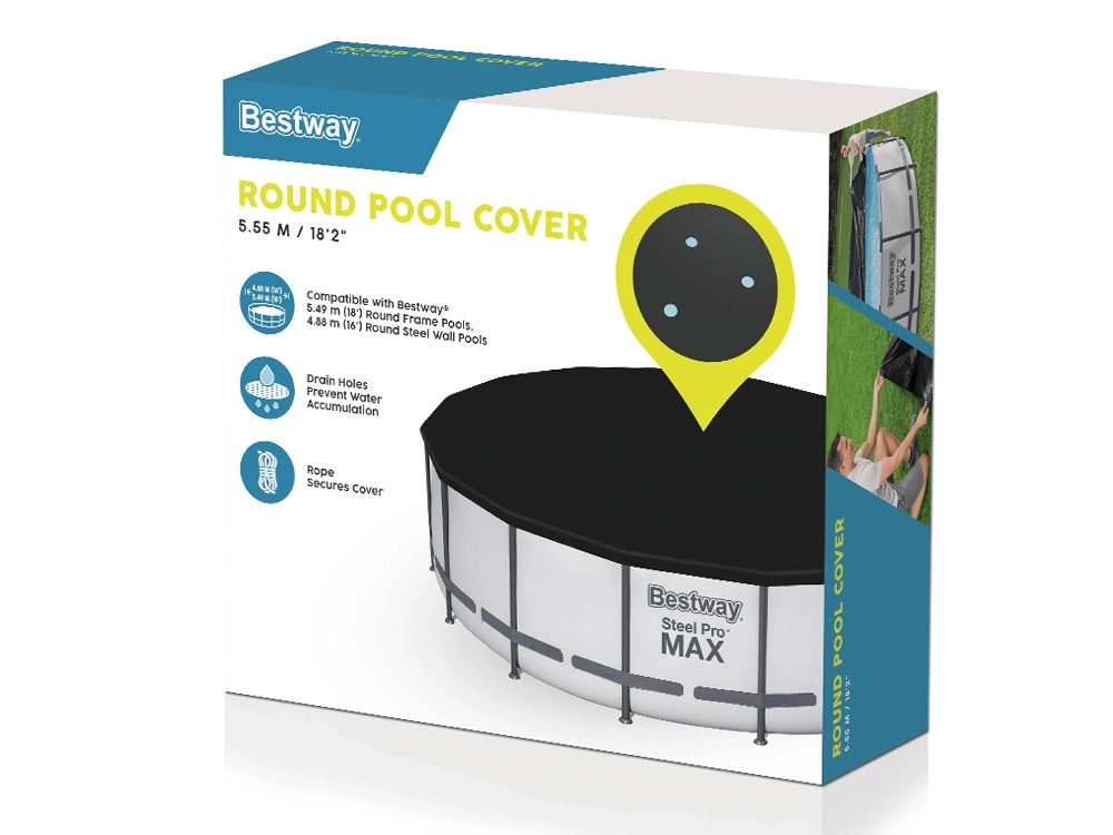 Το προστατευτικό κάλυμμα Bestway έχει σχεδιαστεί ώστε να παρέχει βέλτιστη προστασία για την πισίνα σας. Χάρη στη χρήση ανθεκτικού και ισχυρού υλικού, το κάλυμμα εξυπηρετεί για πολλές σεζόν. Στιβαρά κορδόνια στερέωσης εξασφαλίζουν ότι το κάλυμμα παραμένει στη θέση του ακόμη και σε θυελλώδεις καιρικές συνθήκες, ενώ οι οπές αποστράγγισης απομακρύνουν αποτελεσματικά το πλεονάζον νερό.