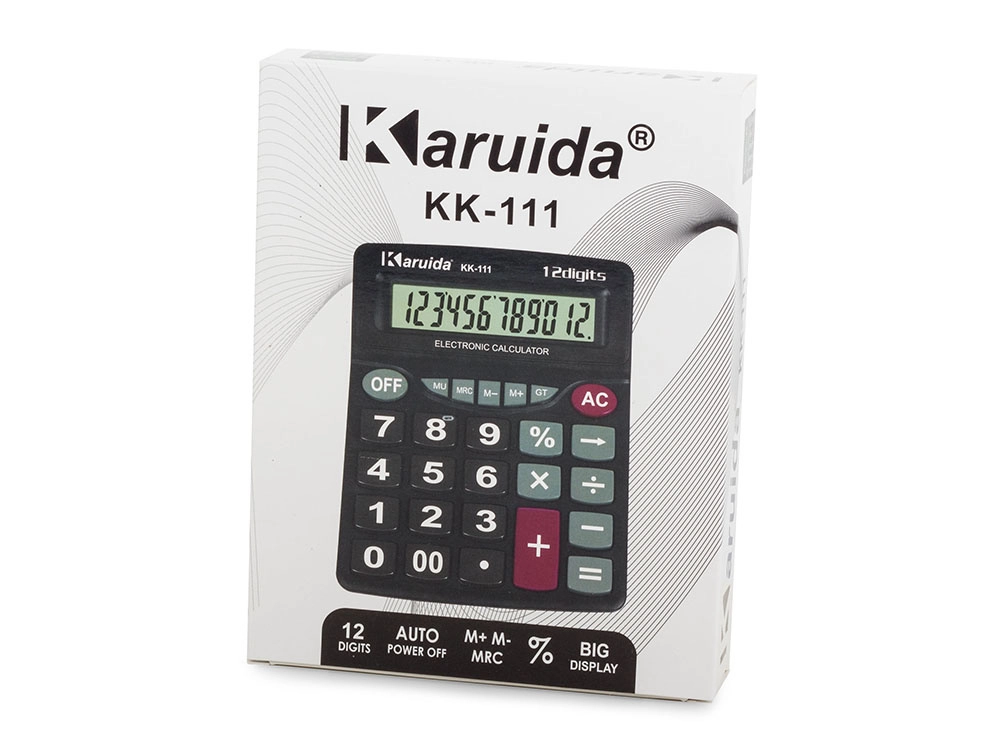 Μεγάλη γραφειακή αριθμομηχανή με οθόνη 12 ψηφίων, ιδανική για χρήση στο σπίτι, στο σχολείο ή στο γραφείο. Χάρη στην κεκλιμένη οθόνη εξασφαλίζει εύκολη ανάγνωση των αποτελεσμάτων.