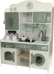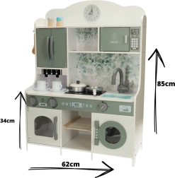 Η κουζίνα είναι φτιαγμένη από ποιοτικό ξύλο με λεπτές λεπτομέρειες και έχει σχεδιαστεί για να ευχαριστεί το μάτι και την καρδιά. Τα ξύλινα παιχνίδια είναι εξαιρετική επιλογή για όσους θέλουν τα παιχνίδια τους να είναι φιλικά προς το περιβάλλον και ανθεκτικά.