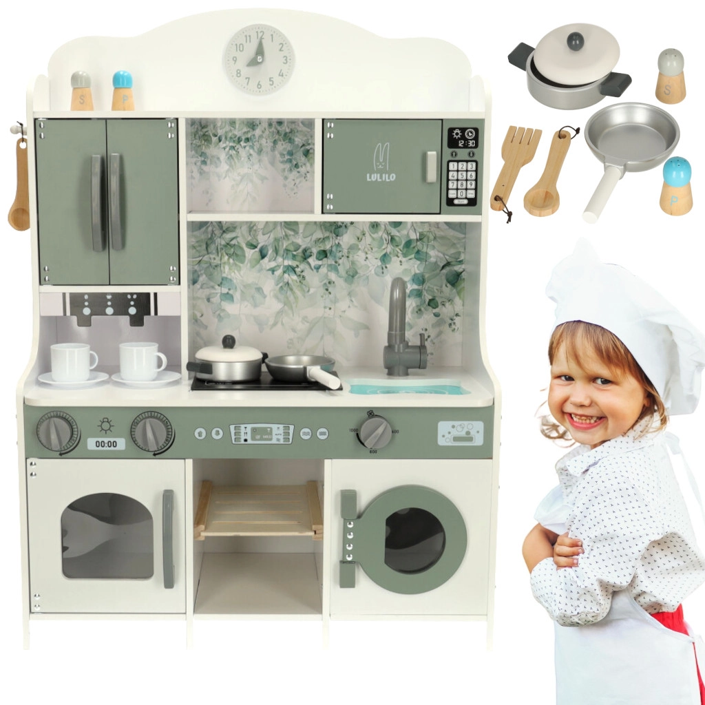 Ζήστε τη μαγεία του «βασιλείου της κουζίνας» με την ξύλινη παιδική κουζίνα Lulilo Saliko. Τα παιδιά λατρεύουν να μιμούνται τους μεγάλους και αυτή η κουζίνα τους προσφέρει τον χώρο να αναπτύξουν τη δημιουργικότητα και τις δεξιότητές τους. Με ρεαλιστικές λειτουργίες όπως φούρνος μικροκυμάτων και καφετιέρα, θα γίνουν οι κύριοι σεφ στο σπίτι τους.