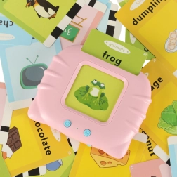 Συστήστε στα παιδιά τα αγγλικά με παιχνιδιάρικο τρόπο. Αρκεί να εισαγάγετε μία από τις 112 εικονογραφημένες κάρτες και ο αναγνώστης αναπαράγει αμέσως τη σχετική λέξη. Κάθε κάρτα έχει δύο λέξεις (και στις δύο πλευρές) και καθαρή εικογράφηση που διευκολύνει την κατανόηση. Έτσι τα παιδιά εξασκούν φυσικά προφορά, λεξιλόγιο και τη σύνδεση εικόνας-ήχου.