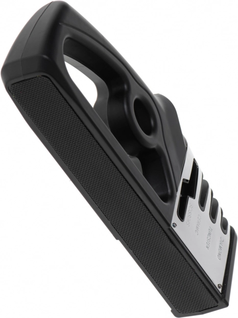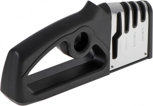 Εκτός από τις τρεις θυρίδες για μαχαίρια, ο ακονιστής διαθέτει και ειδικό άνοιγμα για γρήγορο ακόνισμα ψαλιδιών.