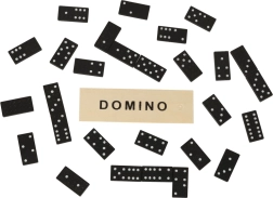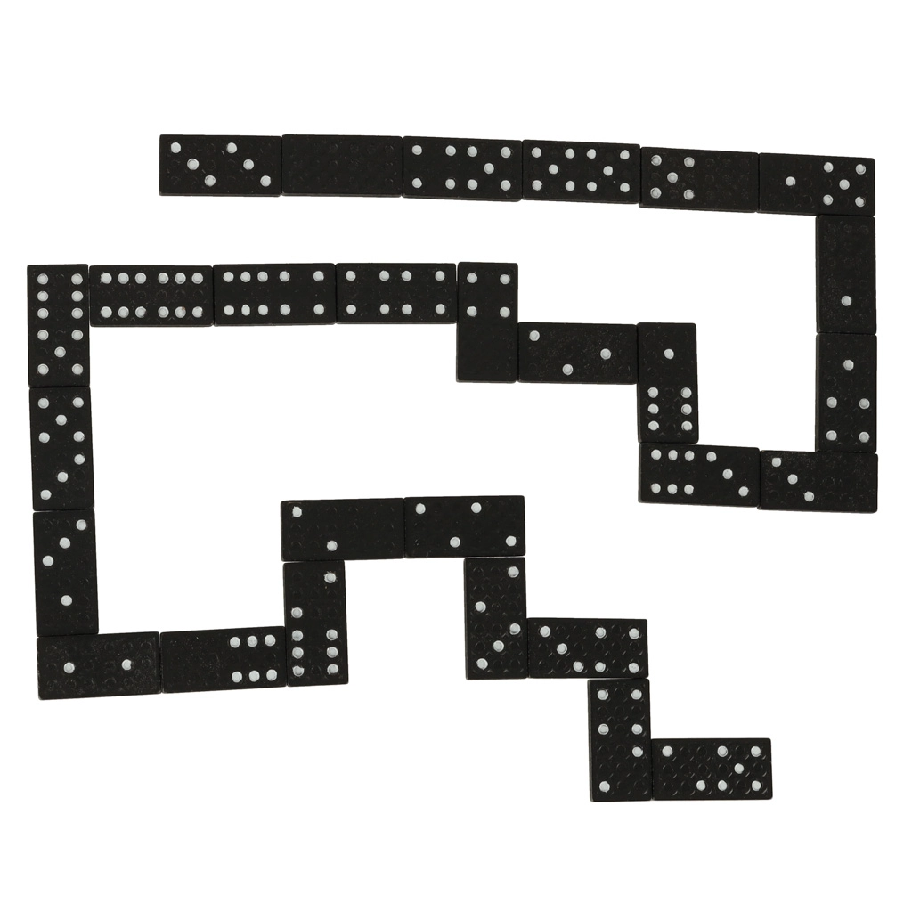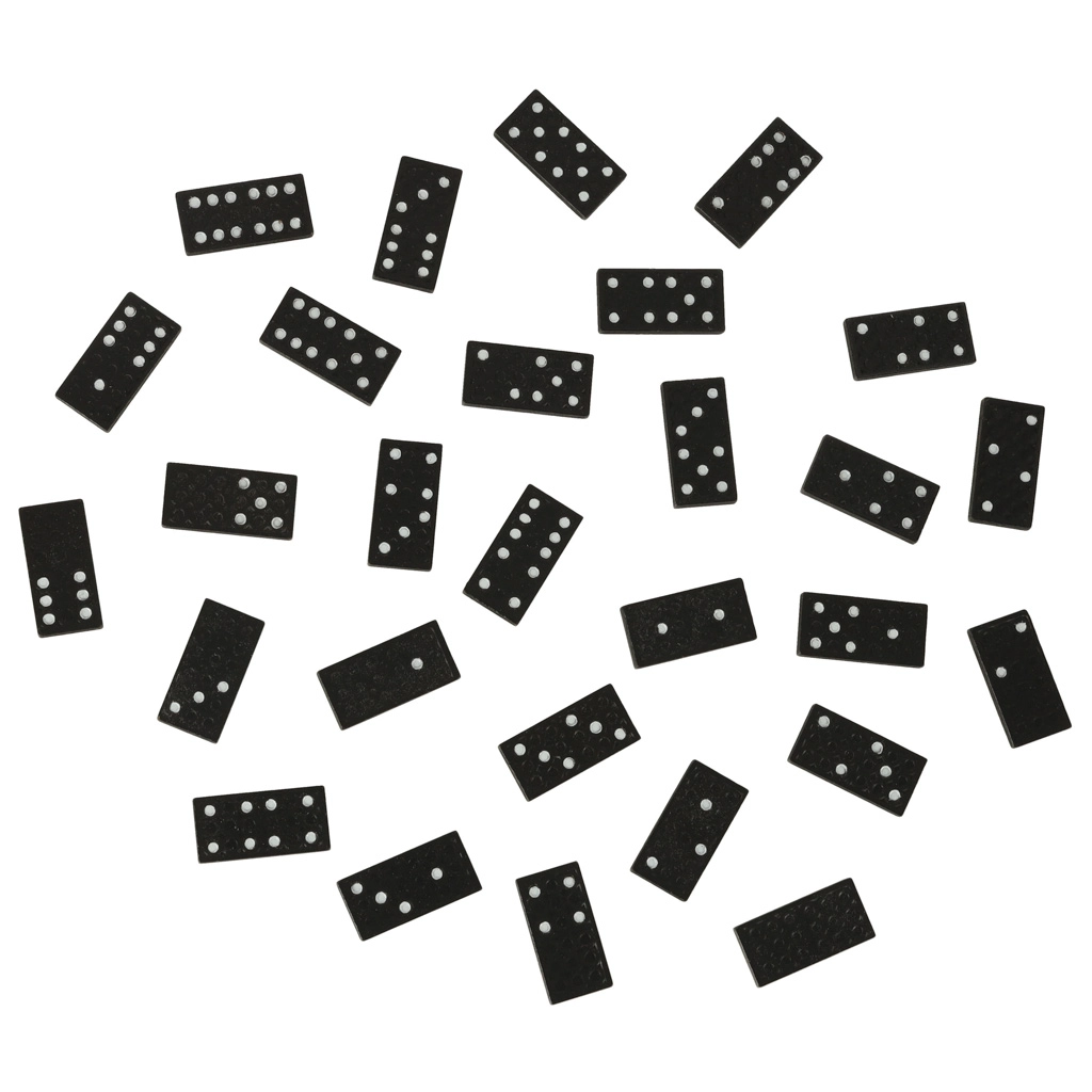 Μαύρο ντόμινο με λευκές τελείες (0–6) για εξαιρετική αναγνωσιμότητα και ομαλή ροή παιχνιδιού για παιδιά και ενήλικες.