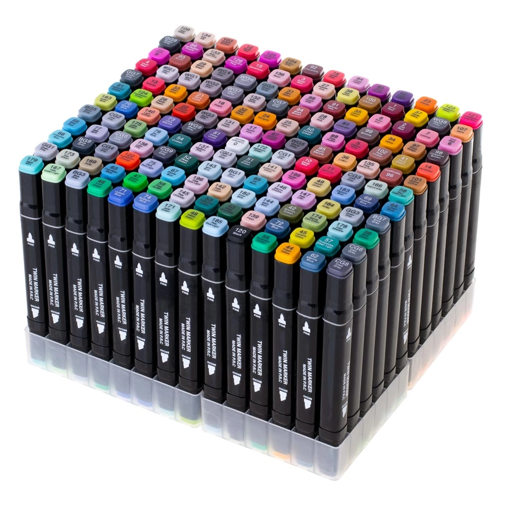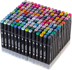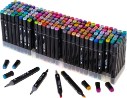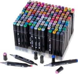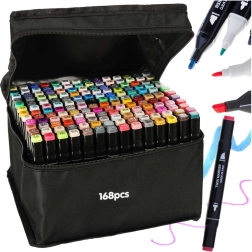 Απελευθερώστε τη δημιουργικότητά σας με το σετ των 168 διπλών αλκοολικών μαρκαδόρων σε πρακτική θήκη και με πλαστική βάση. Φρέσκα, έντονα χρώματα που αναμειγνύονται και μπλεντάρουν εύκολα, στεγνώνουν γρήγορα και δεν μουτζουρώνουν. Η φαρδιά και η λεπτή μύτη εξασφαλίζουν ακριβείς λεπτομέρειες και γρήγορο γέμισμα επιφανειών – ιδανικοί για εικονογραφήσεις, σκιτσογράφηση, σχεδίαση και χρωμάτισμα.
