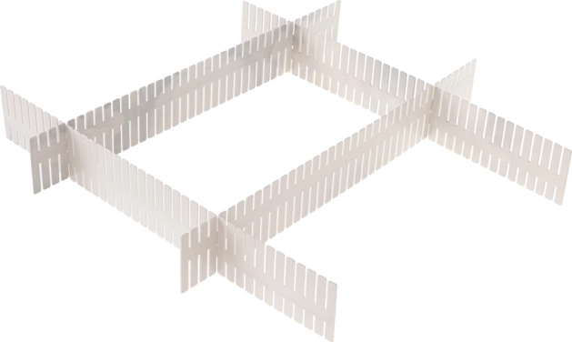 Αρκεί να μετρήσετε το επιλεγμένο συρτάρι, να προσαρμόσετε το μήκος του χωρίσματος, να το τοποθετήσετε στον χώρο και να το συνδέσετε μέσω των οπών για σταθερότητα.