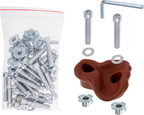 Η εγκατάσταση είναι εύκολη και γρήγορη – στη συσκευασία περιλαμβάνεται πλήρες σετ εξαρτημάτων στερέωσης. Οι λαβές διαθέτουν τραχιά επιφάνεια για σταθερό κράτημα και στρογγυλεμένες άκρες για μεγαλύτερη ασφάλεια. Ιδανικές για οικιακούς τοίχους αναρρίχησης, κήπια παιχνίδια και παιδικά δωμάτια.