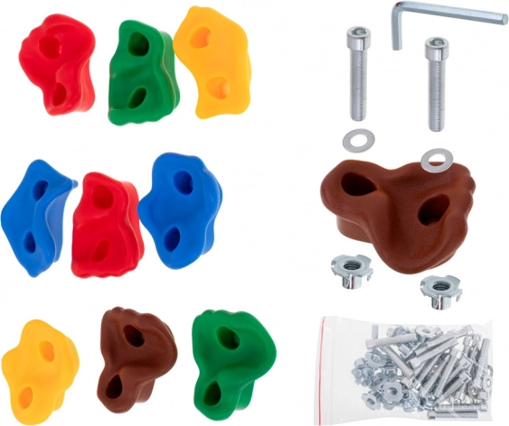 Οι πολύχρωμες παιδικές λαβές αναρρίχησης μετατρέπουν κάθε τοίχο σε μια διασκεδαστική διαδρομή με εμπόδια. Στη συσκευασία θα βρείτε ό,τι χρειάζεστε για γρήγορη εγκατάσταση – 10 ανθεκτικές λαβές, βίδες, ροδέλες και παξιμάδια καθώς και κλειδί άλεν. Οι λαβές έχουν αντιολισθητική, τραχιά υφή και διάφορα σχήματα για ασφαλές και σίγουρο κράτημα.