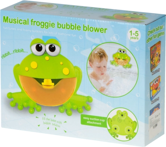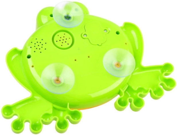Αυτός ο βατραχίσιος δημιουργός φυσαλίδων μετατρέπει το συνηθισμένο μπάνιο σε χαρούμενη παράσταση. Αρκεί να γεμίσετε το αποσπώμενο δοχείο με μείγμα νερού και παιδικού αφρόλουτρου, να στερεώσετε το παιχνίδι με βεντούζες σε λεία επιφάνεια και να πατήσετε το κουμπί. Ο βάτραχος θα αρχίσει να απελευθερώνει πολλές φυσαλίδες και θα προσθέσει χαρούμενες μελωδίες, που θα διασκεδάσουν ακόμη και τους μικρούς «αντιπάλους» του μπάνιου.