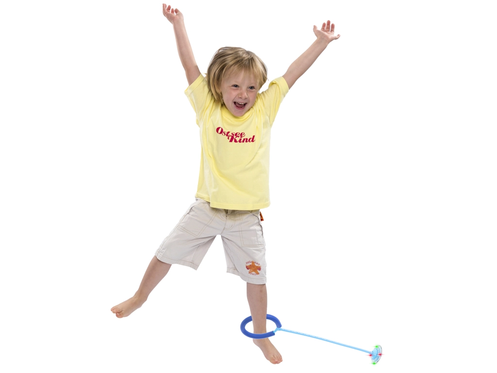 Διασκεδαστικό δαχτυλίδι άλματος για τον αστράγαλο με αναβοσβήνοντα LED φώτα που παρακινεί τα παιδιά να κινηθούν και αναπτύσσει δεξιότητες συντονισμού, ισορροπία και αντανακλαστικά. Αρκεί να φορέσετε το δαχτυλίδι στον αστράγαλο, να το περιστρέψετε και να υπερπηδάτε την περιστρεφόμενη μπαλίτσα – όσο πιο γρήγορα γυρίζει, τόσο πιο έντονα λάμπει!