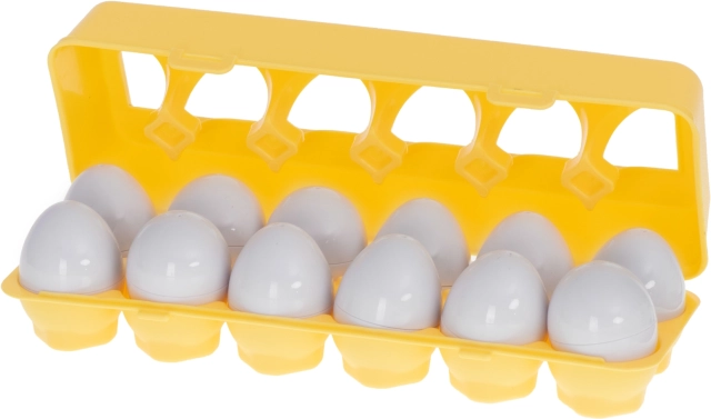 Το εκπαιδευτικό παιχνίδι σε σχήμα αυγών προσφέρει ώρες διασκέδασης για τα παιδιά, διδάσκοντας την αναγνώριση σχημάτων και χρωμάτων. Το σετ περιλαμβάνει 12 αυγά, τα οποία πρέπει να ενωθούν στο σωστό μισό σύμφωνα με το σχήμα και το χρώμα. Αυτό το παζλ όχι μόνο υποστηρίζει τη λογική σκέψη και τη δημιουργικότητα, αλλά βοηθά επίσης στην ανάπτυξη των χειρωνακτικών δεξιοτήτων των μικρότερων παιδιών.