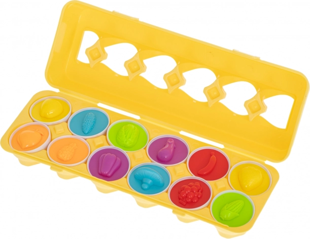 Ανακαλύψτε το μοναδικό παιχνίδι σε σχήμα αυγών που σίγουρα θα ενθουσιάσει όλους τους μικρούς εξερευνητές. Αυτό το δημιουργικό σετ περιλαμβάνει 12 αυγά, καθένα από τα οποία κρύβει διαφορετικό σχήμα και χρώμα κάτω από το κέλυφος. Κύριος στόχος είναι η σύνδεση των δύο μισών ώστε να δημιουργούν ένα σύνολο, κάτι που υποστηρίζει τη λογική σκέψη και την παιδική δημιουργικότητα. Το παιχνίδι με τα αυγά αναπτύσσει όχι μόνο τη λεπτή κινητικότητα, αλλά και την ικανότητα αναγνώρισης σχημάτων και χρωμάτων. Χάρη στο χαμηλό βάρος και τις συμπαγείς διαστάσεις, μπορεί να μεταφερθεί εύκολα στα ταξίδια. Ιδανικό για να περνά ευχάριστα η ώρα κατά την αναμονή ή σε μεγάλα ταξίδια.