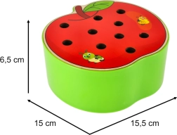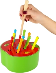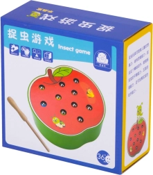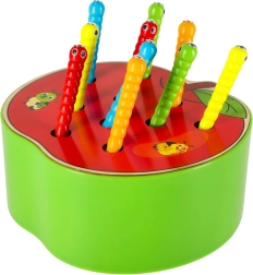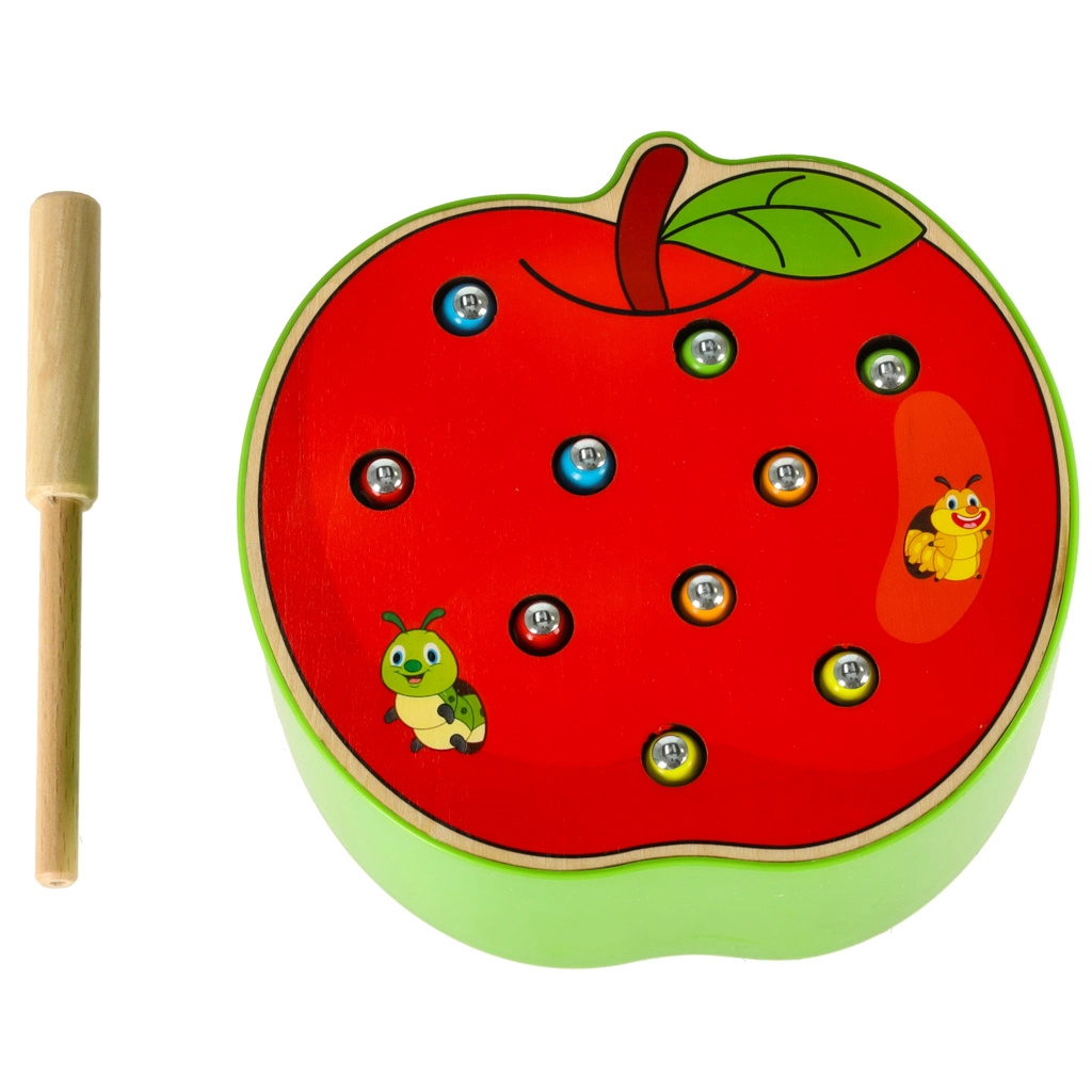 Ανακαλύψτε το εθιστικό μαγνητικό παιχνίδι σε σχήμα μήλου, που διασκεδάζει και ταυτόχρονα αναπτύσσει τα παιδιά. Ο στόχος είναι, με το μαγνητικό ραβδί, να «πιάσουν» τις κάμπιες και να τις τραβήξουν προσεκτικά από τις οπές – και σε πιο απαιτητική εκδοχή να τις επιστρέψουν πάλι μέσα. Η απλή μορφή και τα φυσικά υλικά καλλιεργούν την αυτονομία και την περιέργεια των παιδιών.