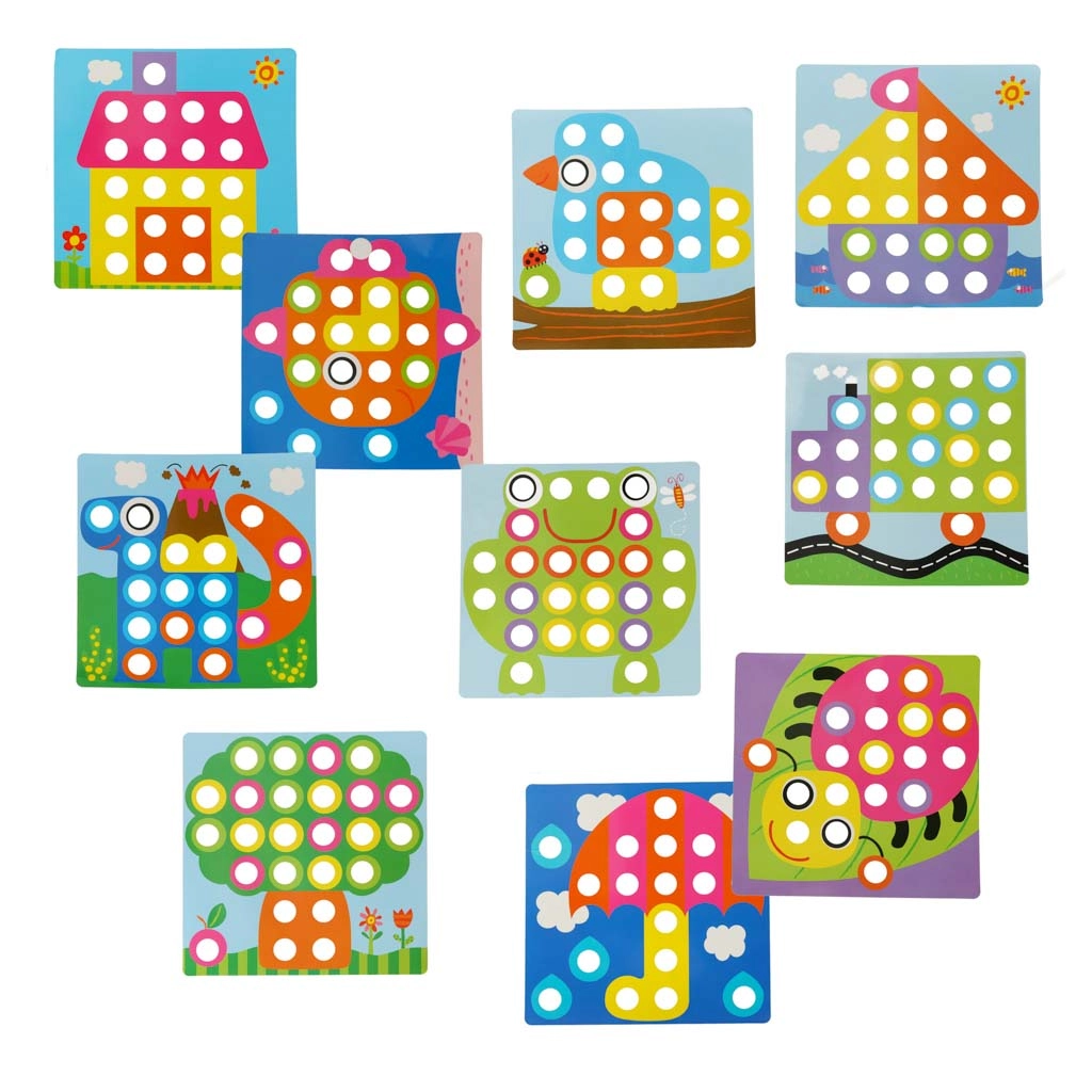Τα μεγάλα μανταλάκια πιάνoνται εύκολα και τα παιδιά τα τοποθετούν στις οπές σύμφωνα με τα χρώματα – εξασκούν λαβή, συντονισμό χεριού–ματιού και προσοχή. Ιδανικό πρώτο μωσαϊκό για προσχολικά παιδιά.