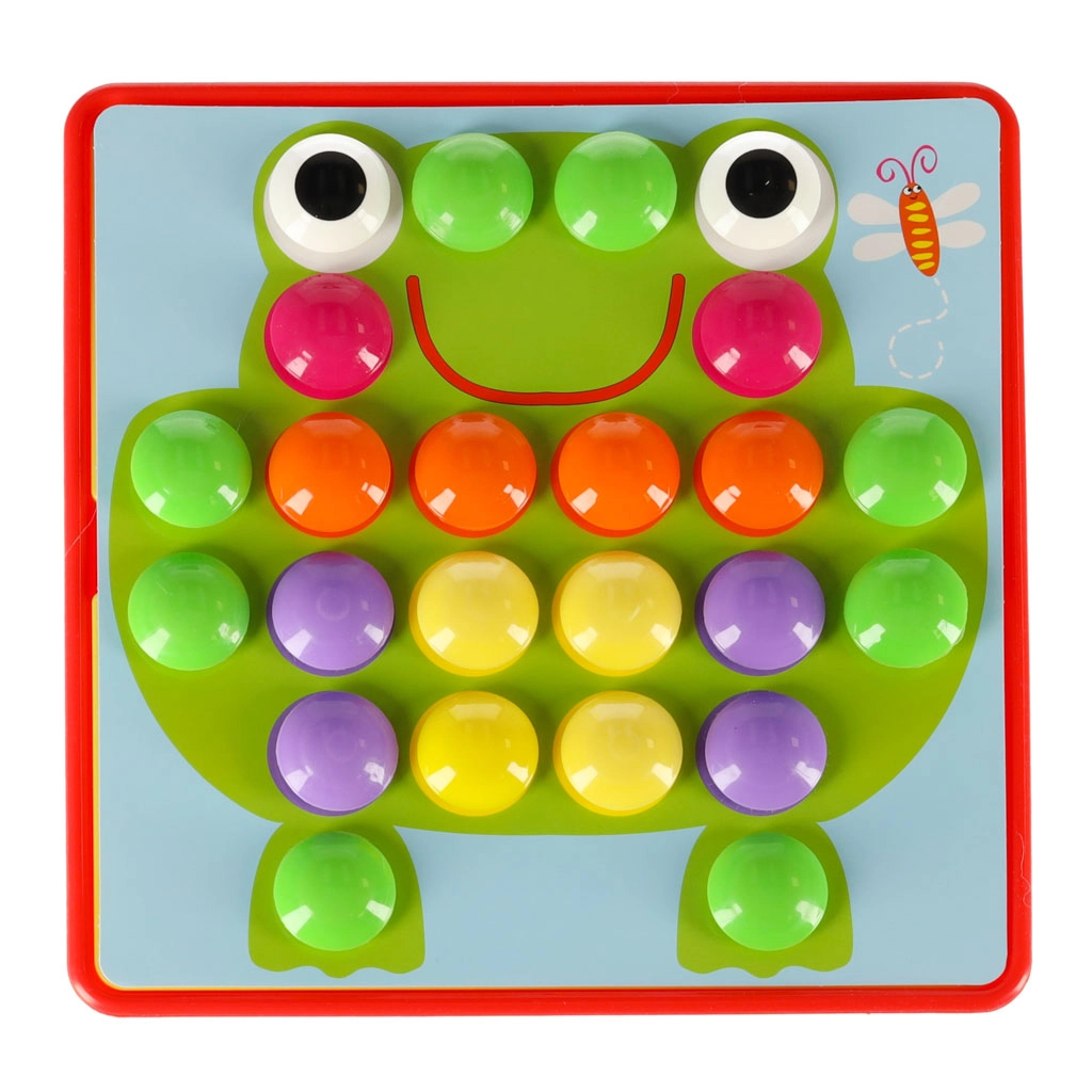Τα παιδιά τοποθετούν μεγάλα, εύκολα στο κράτημα μανταλάκια στις οπές βάσει χρώματος και δημιουργούν τα δικά τους σχέδια. Το παιχνίδι είναι διαισθητικό, διασκεδαστικό και ασφαλές χάρη στο στρογγυλεμένο σχήμα των μανταλακίων. Ιδανικό για μάθηση στο σπίτι και δραστηριότητες στο νηπιαγωγείο.
