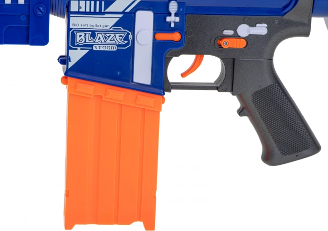 Ισχυρός παιδικός blaster BLAZE STORM προσφέρει δραστήρια διασκέδαση στο σπίτι και έξω. Αυτόματη βολή με μπαταρίες, γεμιστήρας για 12 βελάκια, εμβέλεια έως 10 m και 20 αφρώδη βελάκια στη συσκευασία. Ελαφριά κατασκευή, αφαιρούμενο σκοπευτικό και εργονομική λαβή που υποστηρίζουν συντονιστικές και κινητικές δεξιότητες.