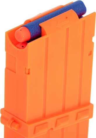 Περιλαμβάνεται αφαιρούμενο σκοπευτικό για πιο ακριβή στόχευση και γεμιστήρας για 12 αφρώδη βελάκια, που αφαιρείται γρήγορα με το πλαϊνό κουμπί. Στη συσκευασία θα βρείτε 20 βελάκια (10 κλασικά και 10 με βεντούζα), ώστε να αρχίσετε να παίζετε αμέσως μετά το άνοιγμα.