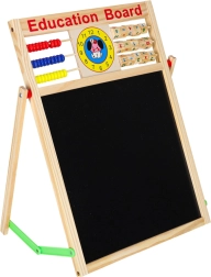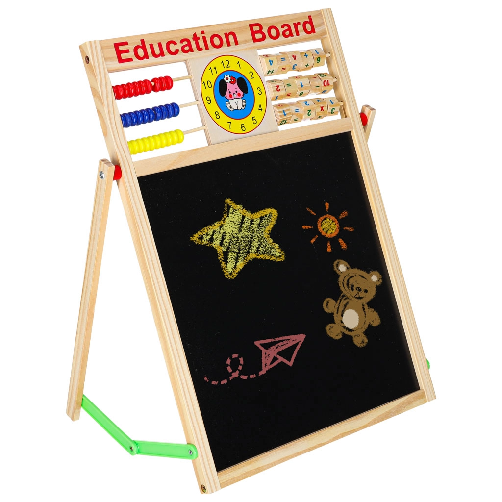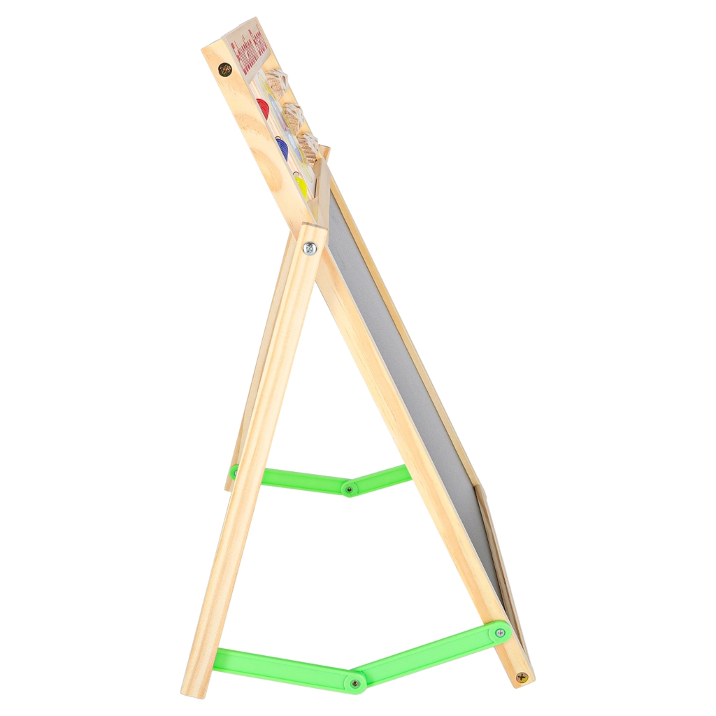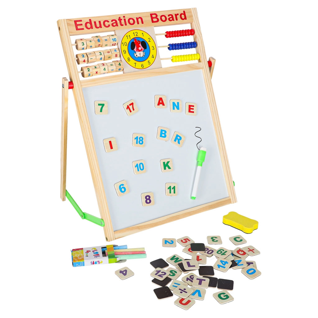 Αυτός ο πολυχρηστικός πίνακας είναι ιδανικός για μάθηση στο σπίτι και για το παιδικό δωμάτιο. Η μαύρη πλευρά προορίζεται για σχέδιο και γράψιμο με κιμωλία, ενώ η λευκή μαγνητική πλευρά για μαρκαδόρο και τοποθέτηση μαγνητών. Η σταθερή ξύλινη κατασκευή εξασφαλίζει ασφαλή και άνετη χρήση.