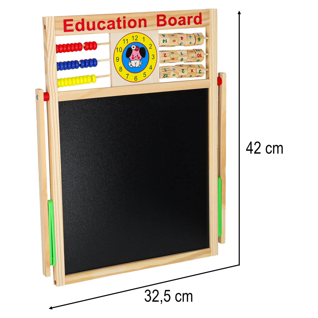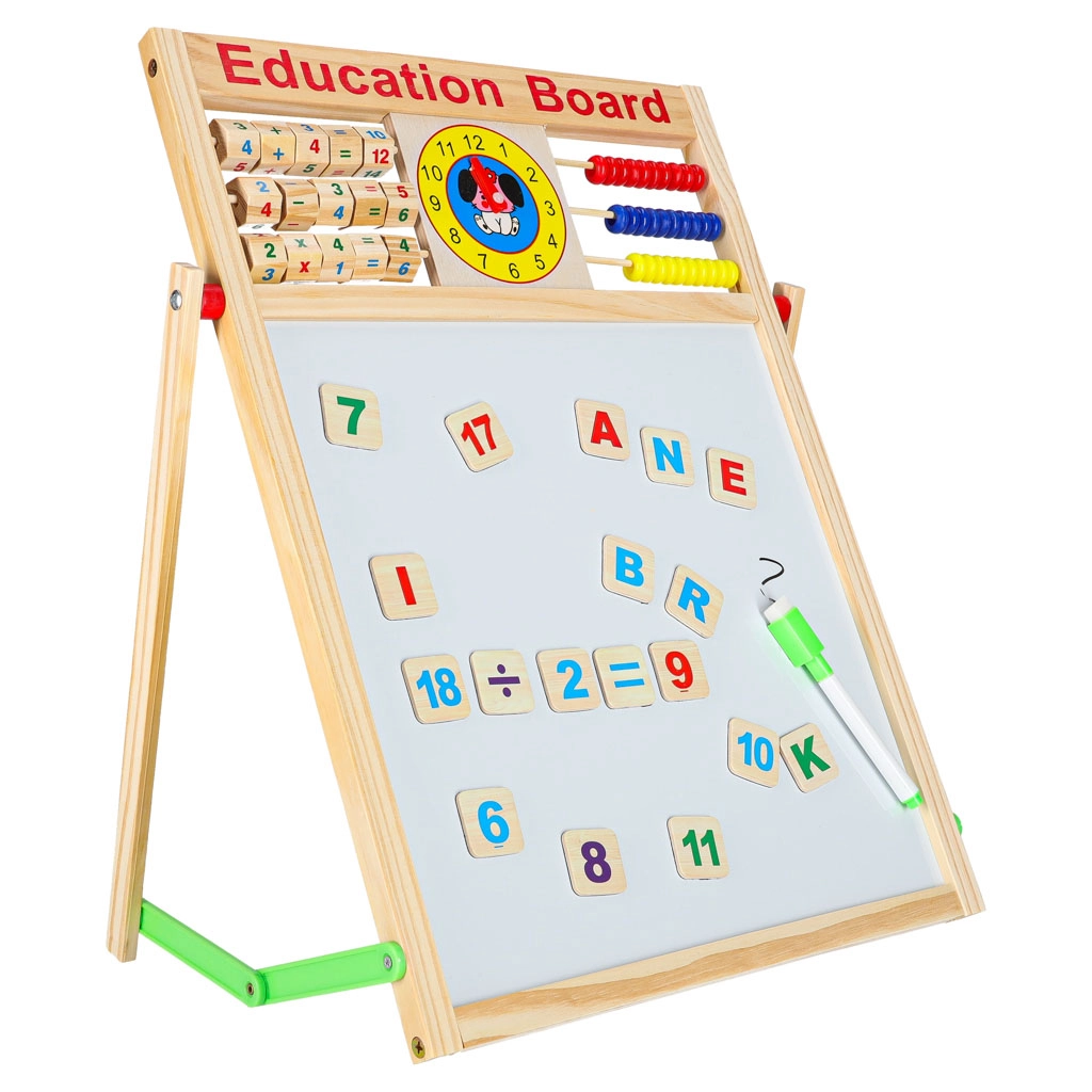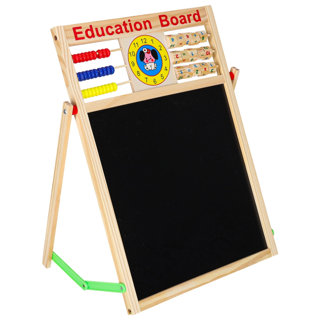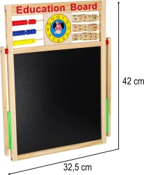 Αυτός ο πολυχρηστικός πίνακας είναι ιδανικός για μάθηση στο σπίτι και για το παιδικό δωμάτιο. Η μαύρη πλευρά προορίζεται για σχέδιο και γράψιμο με κιμωλία, ενώ η λευκή μαγνητική πλευρά για μαρκαδόρο και τοποθέτηση μαγνητών. Η σταθερή ξύλινη κατασκευή εξασφαλίζει ασφαλή και άνετη χρήση.