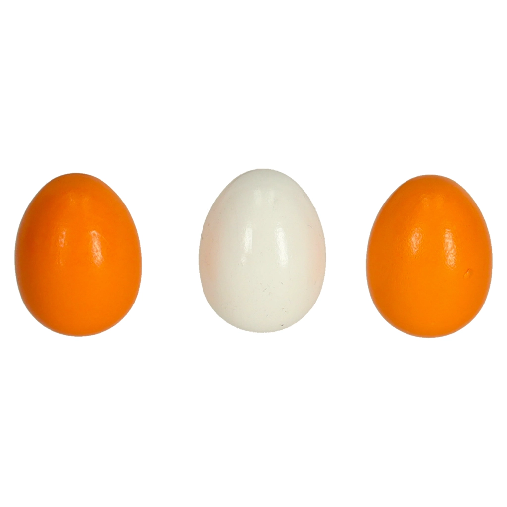 - 1× χάρτινη θήκη για 6 αυγά, 6× ξύλινα αυγά (3 ολόκληρα, 3 με αποσπώμενο κρόκο)