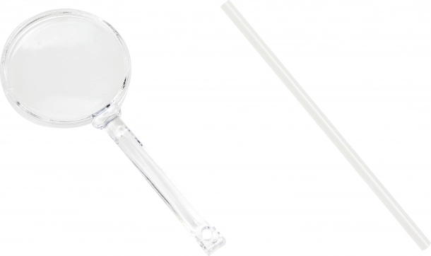 Το σετ περιλαμβάνει μεγεθυντικό φακό και πλαστικό καλαμάκι/ραβδάκι για εύκολη δημιουργία οπών και λεπτομερή μελέτη των διαδρομών των μυρμηγκιών.