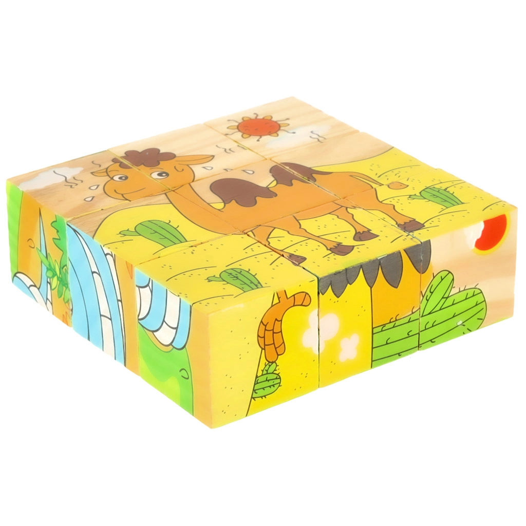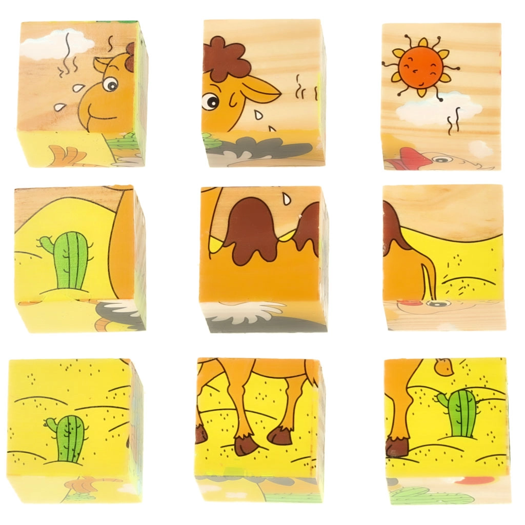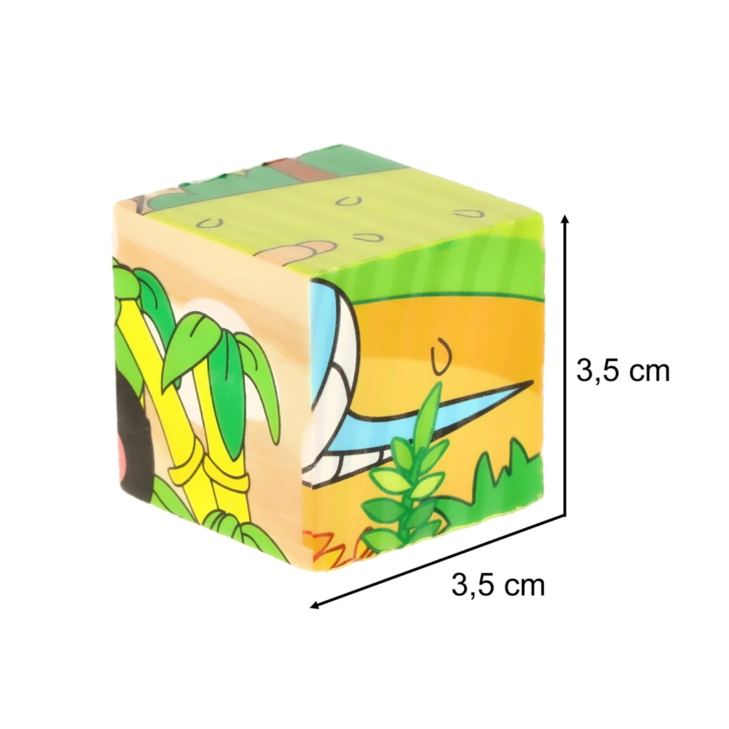 Το ξύλινο παζλ Σαφάρι 3D 6-σε-1 είναι το ιδανικό εργαλείο για μάθηση και διασκέδαση μαζί. Με εννέα ξύλινα κυβικά τουβλάκια, καθένα με διαστάσεις 3,5 cm x 3,5 cm x 3,5 cm, μπορείτε να συνθέσετε έξι διαφορετικές ζωικές εικόνες - πάντα, φίδι, μαϊμουδάκι, στρουθοκάμηλο, καγκουρό και καμήλα. Ολόκληρο το παζλ μετρά 10 cm x 10 cm x 3,5 cm.