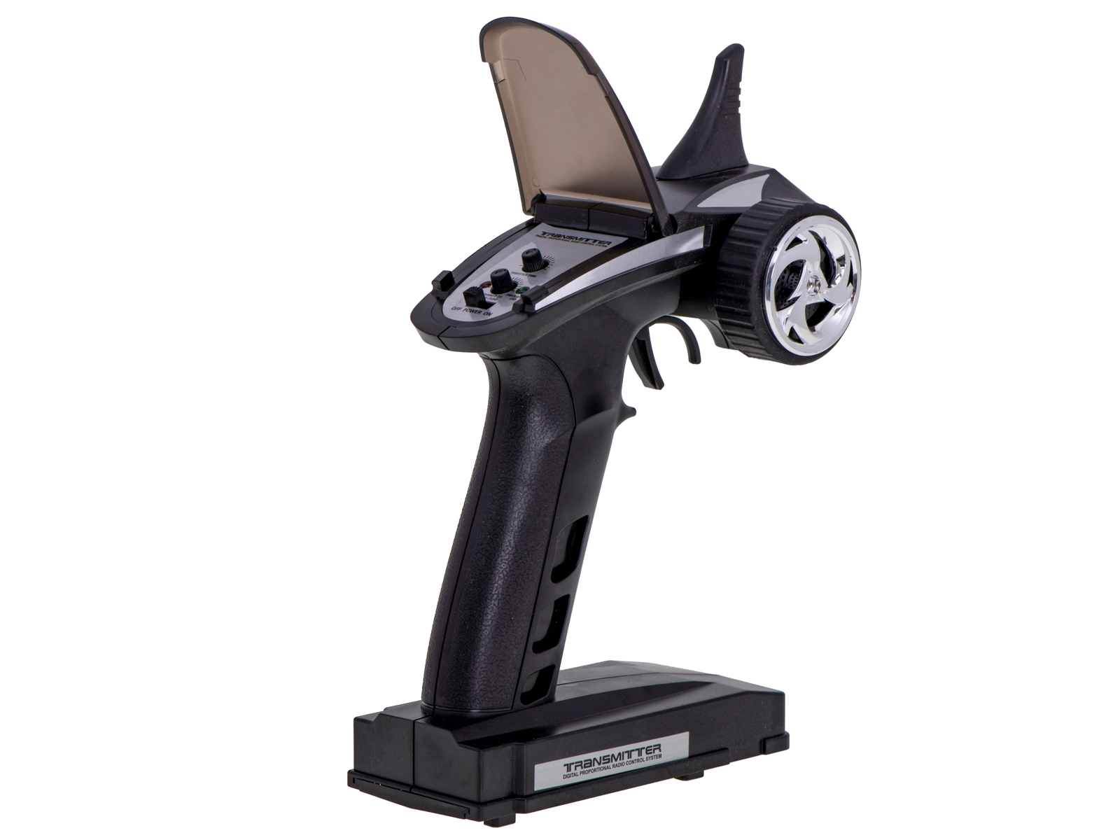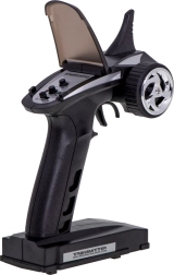 Πιστολοειδής πομπός στη συχνότητα 2.4 GHz προσφέρει σταθερό σήμα και εμβέλεια έως περίπου 150 m. Απολαύστε ομαλή επιτάχυνση, όπισθεν και ευαίσθητο τιμόνι χωρίς παρεμβολές.