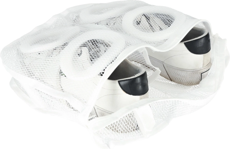 Πρακτική δικτυωτή σακούλα για πλύσιμο παπουτσιών που προστατεύει τα παπούτσια σας κατά τον κύκλο στο πλυντήριο από τριβές και παραμόρφωση. Χάρη στη ανθεκτική δικτυωτή ύφανση και το κλείσιμο με φερμουάρ, το νερό και το απορρυπαντικό κυκλοφορούν ελεύθερα, ενώ τα παπούτσια παραμένουν με ασφάλεια στο εσωτερικό. Οι συμπαγείς διαστάσεις 28 × 27 εκ. είναι ιδανικές για αθλητικά και άλλα πιο ευαίσθητα υποδήματα.