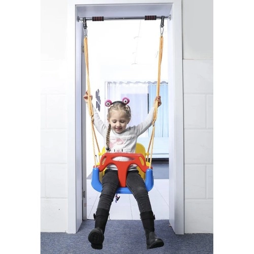 Η συναρμολόγηση είναι γρήγορη και εύκολη – κρεμάστε την κούνια στο μπαλκόνι, στην κάσα της πόρτας (π.χ. σε δοκό πίεσης) ή σε κατασκευή κήπου. Τα ρυθμιζόμενα νάιλον σχοινιά επιτρέπουν ακριβή ρύθμιση ύψους. Τα ανθεκτικά πλαστικά μέρη από PP και τα μεταλλικά στοιχεία εξασφαλίζουν μεγάλη αντοχή για οικιακή χρήση σε εσωτερικούς και εξωτερικούς χώρους.