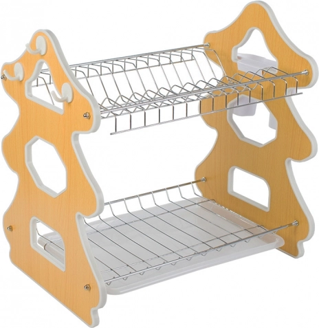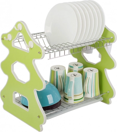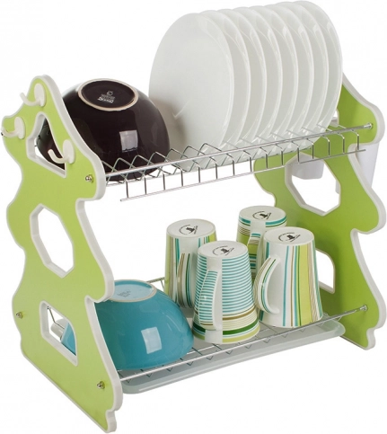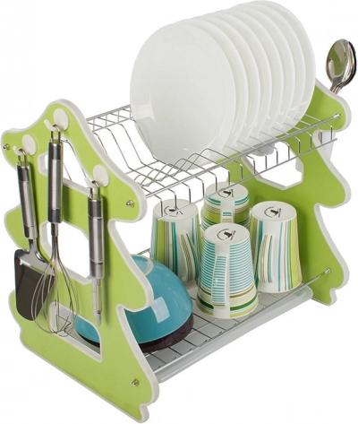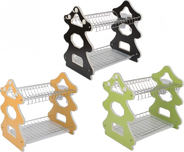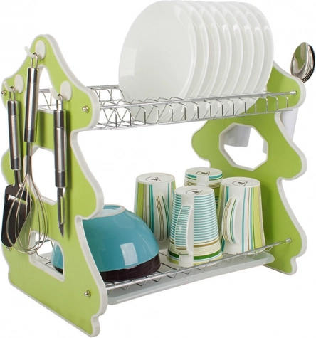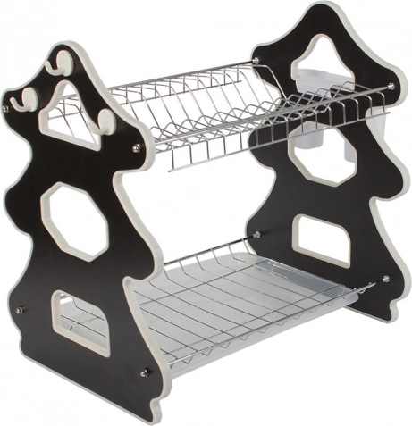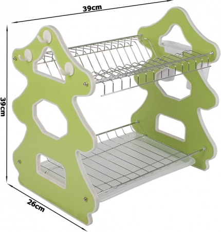 Κομψό διόροφο στεγνωτήριο πιάτων, ιδανικό για μικρές και μεγάλες κουζίνες. Το επάνω επίπεδο χωρά έως 14 πιάτα, ενώ το κάτω προορίζεται για μπολ, κούπες και ποτήρια. Ο πλαϊνός οργανωτής για μαχαιροπίρουνα μπορεί να τοποθετηθεί οπουδήποτε στην περίμετρο και οι τρεις πρακτικοί γάντζοι είναι ιδανικοί για πετσέτες ή κουζινικά σκεύη.