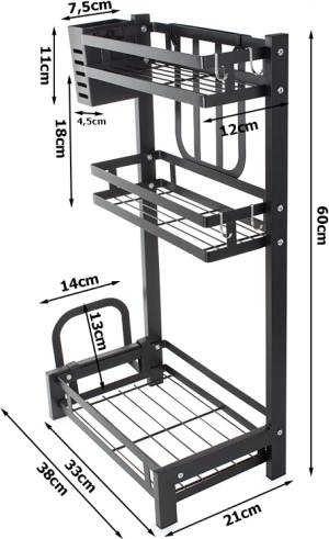 Ο μεταλλικός τριώροφος οργανωτής κουζίνας είναι απαραίτητο βοήθημα για την αποδοτική οργάνωση της κουζίνας. Κατασκευασμένος από υψηλής ποιότητας μέταλλο με ηλεκτροστατική βαφή, το προϊόν είναι ανθεκτικό στις φθορές και στην υγρασία. Η σταθερή κατασκευή επιτρέπει την τοποθέτηση ακόμη και πιο βαριών αντικειμένων.