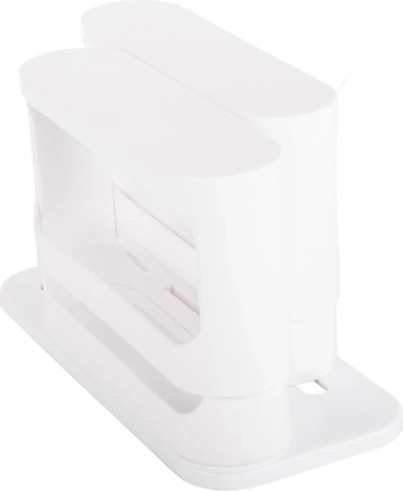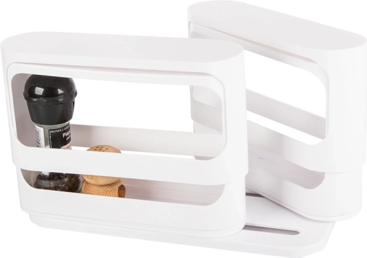 Αυτός ο λευκός πλαστικός οργανωτής είναι η ιδανική λύση για την τακτοποίηση μπαχαρικών και βάζων στην κουζίνα σας. Η περιστρεφόμενη κατασκευή του αξιοποιεί στο έπακρο τον χώρο στα ντουλάπια, αποτελώντας ιδανικό αξεσουάρ για κάθε σπίτι.