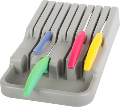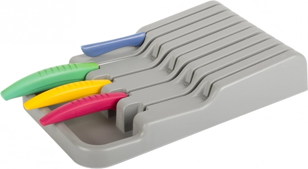 Κομψός και λειτουργικός οργανωτής για μαχαίρια που βοηθά να διατηρείτε την κουζίνα σας τακτοποιημένη και ασφαλή. Με 9 θήκες εξασφαλίζει εύκολη και καθαρή οργάνωση των μαχαιριών μέσα στο συρτάρι.