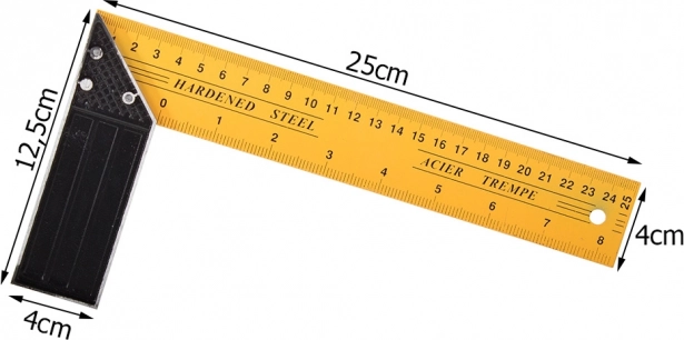 Το ατσάλινο γωνιόμετρο είναι απαραίτητο εργαλείο για οικοδομικές, ανακαινιστικές και ξυλουργικές εργασίες. Μετρά ακριβείς ορθές γωνίες και προσφέρει μέτρηση σε εκατοστά και ίντσες χάρη στις κλίμακες και στις δύο πλευρές.