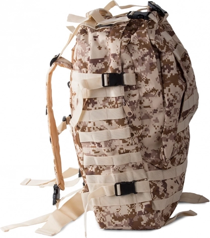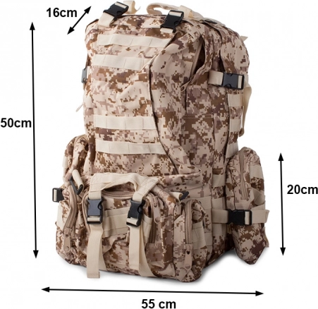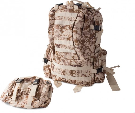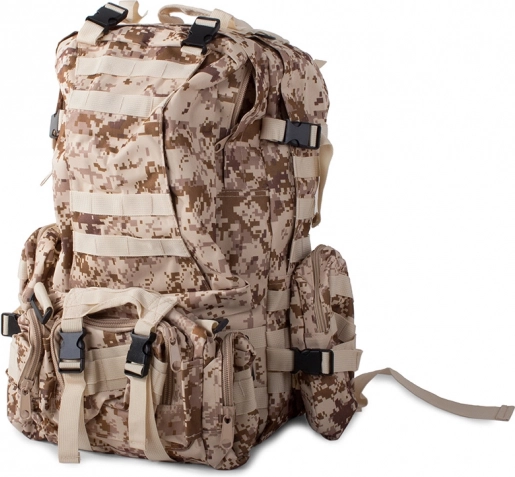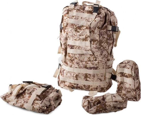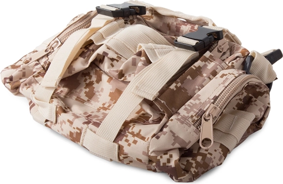 Ξεκινήστε οποιαδήποτε αποστολή χωρίς άγχος για τον καιρό με το αδιάβροχο τακτικό σακίδιο. Το σακίδιο προσφέρει μία μεγάλη κύρια θήκη με επιπλέον χώρισμα και διχτυωτές τσέπες για καλύτερη οργάνωση. Δύο πλαϊνές θήκες μπορούν εύκολα να αποσπαστούν, ενώ το μεγαλύτερο τσαντάκι μέσης μπορεί να χρησιμοποιηθεί ως ανεξάρτητη τσάντα. Το σακίδιο χρησιμοποιεί το σύστημα MOLLE για την προσθήκη επιπλέον θυλάκων και μονάδων και είναι εξοπλισμένο με θωρακικό και οσφυϊκό ιμάντα για μέγιστη άνεση και σταθερότητα.