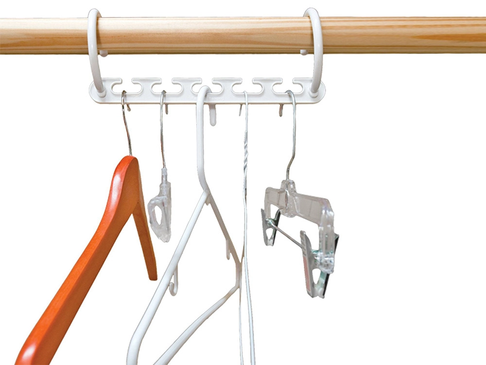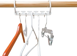 Ο καθολικός οργανωτής για κρεμάστρες έχει σχεδιαστεί ώστε να βελτιστοποιεί τον χώρο στη ντουλάπα και να αποτρέπει το τσαλάκωμα των ενδυμάτων. Με αυτόν τον οργανωτή μπορείτε να κρεμάτε τα ρούχα σας με τάξη και να εξασφαλίζετε άψογη οργάνωση.