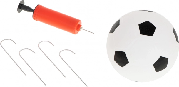 - Μέρη για συναρμολόγηση τέρματος, δίχτυ, στόχο-πανί, ποδοσφαιρική μπάλα, χειροκίνητη τρόμπα